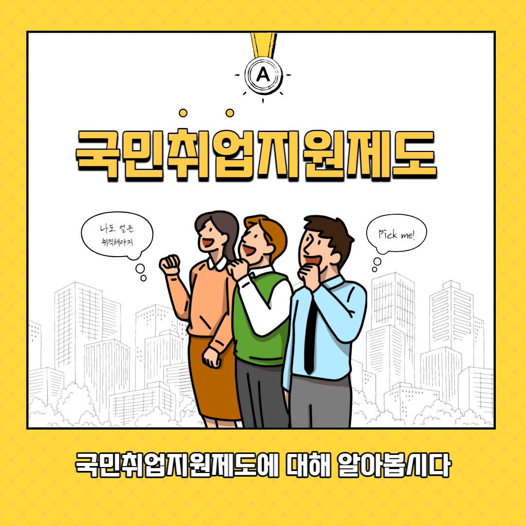 취업을 하고 싶은데 구직에 어려움을 겪고 계신 분들 많으실 겁니다. 취업을 위한 노력은 하지만 구직에 실패하여 구직 활동과 생활에 어려움을 겪고 계신 분들을 위해 중요한 지원금 정보를 가져왔습니다. 바로 ‘국민 취업 지원 제도’입니다. 이 제도는 구직 의사와 근로 능력이 있지만 취업을 하지 못한 분들 중, 일정한 요건을 충족하면 지원금을 지급하는 제도입니다.