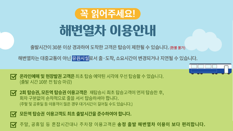 최근 부산이 관광지로 인기가 많아짐에 따라 스카이캡슐과 해변열차를 이용하는 관광객들이 늘어나 미리 예약을 하시는 걸 추천드립니다.